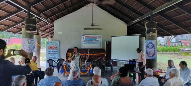 Dr. Vallabh Dhaimodkar was invited for seminar/presentation on Palliative Care and Dilasa at the function organised by Jyesta Nagrik Manch at Nana Nani park at Porvorim on 13th August 2024. Accompanied by Dr Vandana Patankar and Dinar Mardolkar from VISAVA. The program was conducted on behalf of IMA PONDA, IMA PONDA CHARITABLE TRUST and NAPCAIM. Dr. Vallabh Dhaimodkar spoke in detail about Palliative Care, Dilasa and VISAVA. More than 50 participants attended, which included senior citizens, young people and some highscool students.