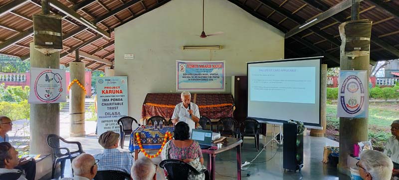 Dr. Vallabh Dhaimodkar was invited for seminar/presentation on Palliative Care and Dilasa at the function organised by Jyesta Nagrik Manch at Nana Nani park at Porvorim on 13th August 2024. Accompanied by Dr Vandana Patankar and Dinar Mardolkar from VISAVA. The program was conducted on behalf of IMA PONDA, IMA PONDA CHARITABLE TRUST and NAPCAIM. Dr. Vallabh Dhaimodkar spoke in detail about Palliative Care, Dilasa and VISAVA. More than 50 participants attended, which included senior citizens, young people and some highscool students.