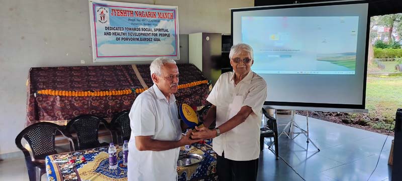 On the Occasion a 90 years old gentleman, a widower, wife died due to cancer, living alone was felicitated by Jyesth Nagarik Manch Porvorim. It was his 90th Birthday. At the end of the presentation he was so much impressed and emotional that instantly he donated Rs. 9000 /- to IMA Ponda Charitable Trust. All the audience were very much impressed. It was a heart touching moment.